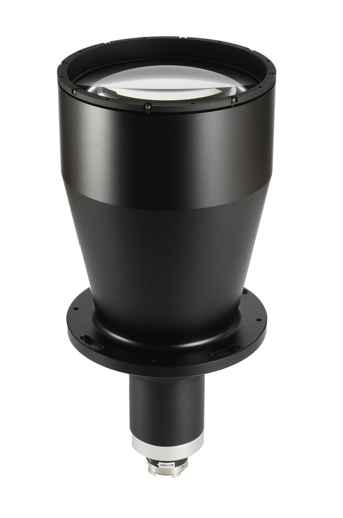 与标准同轴光源相同,发光源在侧面,出射的光线经过菲涅尔透镜后变为准直光线,此光线经过有特殊涂层的分光镜或分光棱镜,一半光线透过后被吸光材料吸收,而另一半光线被反射后照射在被测物表面,经被测物表面反射后经镜头到相机芯片成像。根据实际需要,可设计为不同的尺寸。